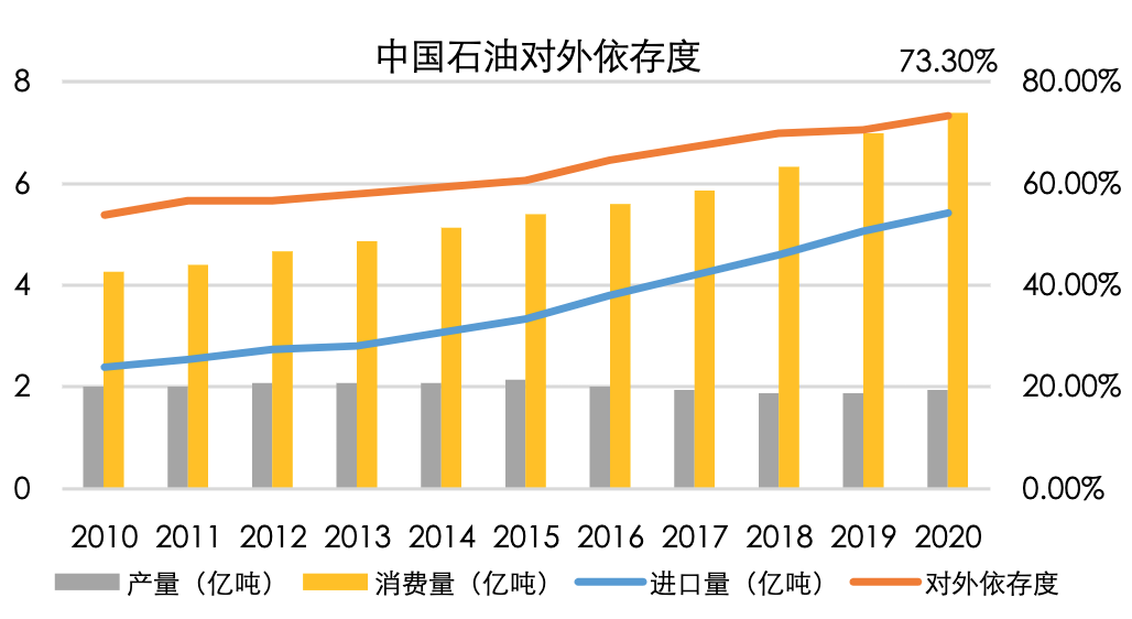 其次,碳减排对中国的国家安全有利。2020年,我国石油的对外依存度73%,天然气的对外依存度43%,如果某一天因为战乱或者其他原因,马六甲海峡进口路线不畅,中国的能源供应和经济发展会大受影响。